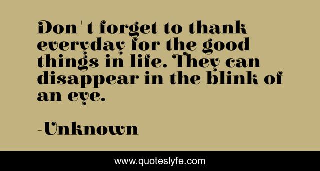 This page presents the quote "Don't forget to thank everyday for the good things in life. They can disappear in the blink of an eye.". Author of this quote is Unknown. This quote is about life, lessons-in-life, problems,.