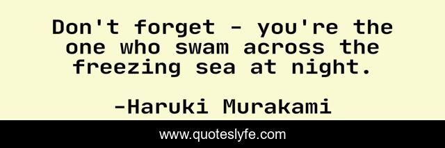 This page presents the quote "Don't forget - you're the one who swam across the freezing sea at night.". Author of this quote is Haruki Murakami. This quote is about loneliness, suffering, redemption,.
