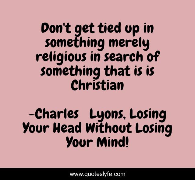 This page presents the quote "Don't get tied up in something merely religious in search of something that is is Christian". Author of this quote is Charles Lyons, Losing Your Head Without Losing Your Mind!. This quote is about motivational-inspirational, inspirational, enthusiasm,.