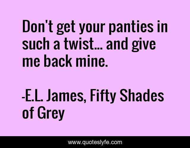 This page presents the quote "Don't get your panties in such a twist... and give me back mine.". Author of this quote is E.L. James, Fifty Shades of Grey. This quote is about romance, fifty-shades, erotica,.