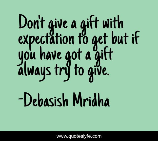 "Debasish Mridha Quotes." Quoteslyfe.com, 2025. Fri. 05 Dec. 2025. <https://www.quoteslyfe.com/quote/Don-t-give-a-gift-with-expectation-90630>.