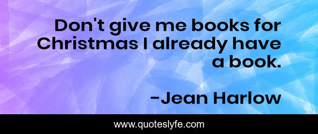 This page presents the quote "Don't give me books for Christmas I already have a book.". Author of this quote is Jean Harlow. This quote is about me, book, give,.