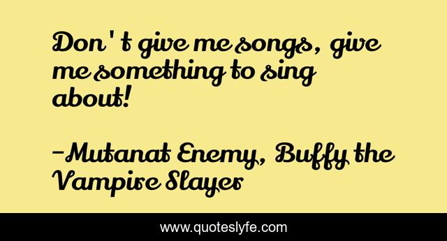 "Mutanat Enemy, Buffy the Vampire Slayer Quotes." Quoteslyfe.com, 2025. Sat. 06 Dec. 2025. <https://www.quoteslyfe.com/quote/Don-t-give-me-songs-give-me-28329>.