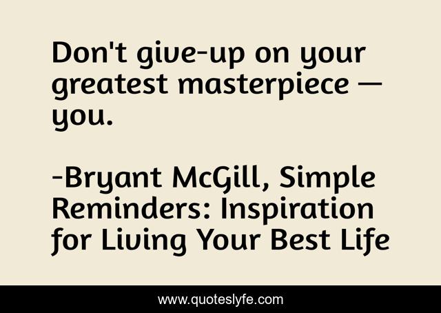 "Bryant McGill, Simple Reminders: Inspiration for Living Your Best Life Quotes." Quoteslyfe.com, 2025. Sun. 07 Dec. 2025. <https://www.quoteslyfe.com/quote/Don-t-give-up-on-your-greatest-165788>.