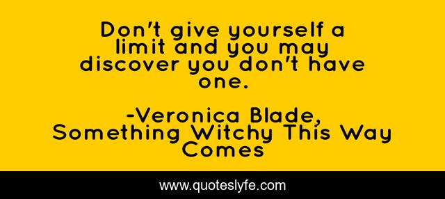 This page presents the quote "Don't give yourself a limit and you may discover you don't have one.". Author of this quote is Veronica Blade, Something Witchy This Way Comes. This quote is about ispirational, thought-provoking,.
