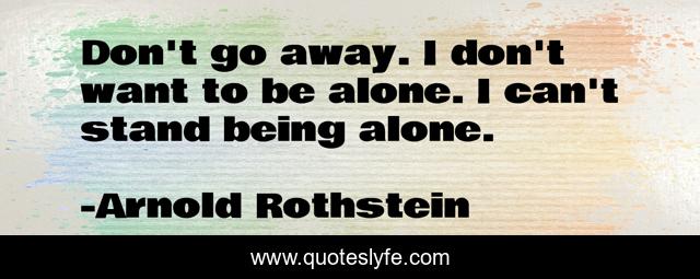 This page presents the quote "Don't go away. I don't want to be alone. I can't stand being alone.". Author of this quote is Arnold Rothstein. This quote is about stand, being alone,.