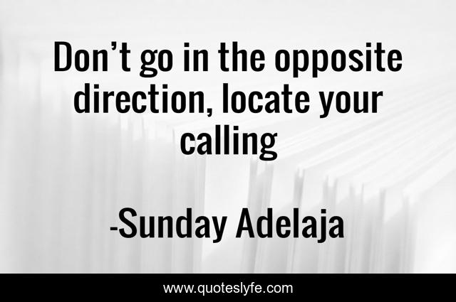 This page presents the quote "Don’t go in the opposite direction, locate your calling". Author of this quote is Sunday Adelaja. This quote is about love, people, money, principles, employment, worship, jobless, service, god,.