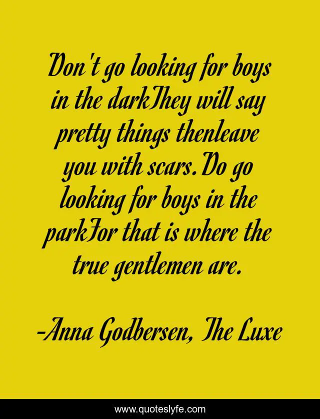 "Anna Godbersen, The Luxe Quotes." Quoteslyfe.com, 2025. Fri. 05 Dec. 2025. <https://www.quoteslyfe.com/quote/Don-t-go-looking-for-boys-in-636>.