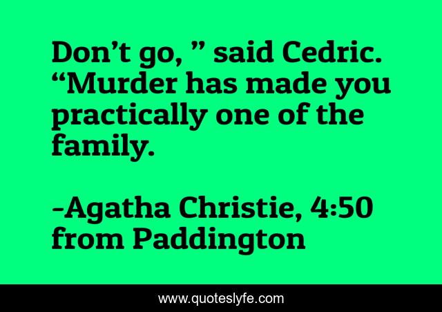 "Agatha Christie, 4:50 from Paddington Quotes." Quoteslyfe.com, 2025. Fri. 05 Dec. 2025. <https://www.quoteslyfe.com/quote/Don-t-go-said-Cedric-Murder-has-208878>.