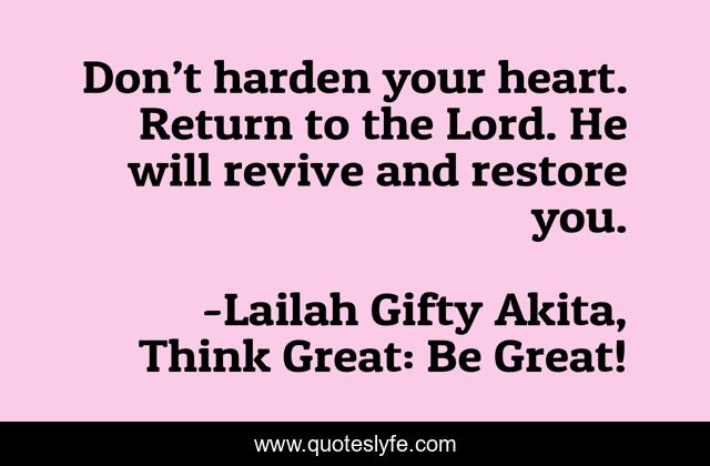 "Lailah Gifty Akita, Think Great: Be Great! Quotes." Quoteslyfe.com, 2025. Mon. 08 Dec. 2025. <https://www.quoteslyfe.com/quote/Don-t-harden-your-heart-Return-to-94888>.