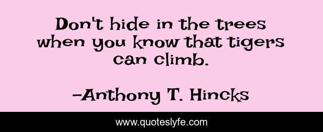 This page presents the quote "Don't hide in the trees when you know that tigers can climb.". Author of this quote is Anthony T. Hincks. This quote is about life, hide, tigers, philosophy, trees, climb,.