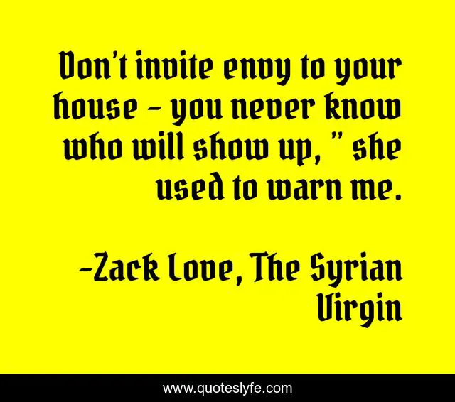 "Zack Love, The Syrian Virgin Quotes." Quoteslyfe.com, 2025. Fri. 05 Dec. 2025. <https://www.quoteslyfe.com/quote/Don-t-invite-envy-to-your-house-94101>.