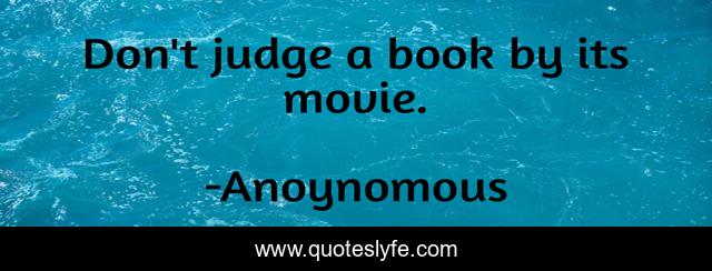 This page presents the quote "Don't judge a book by its movie.". Author of this quote is Anoynomous. This quote is about movies, life, books,.