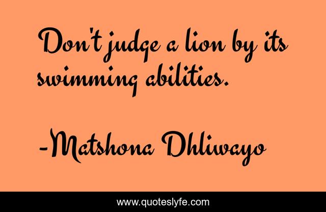 "Matshona Dhliwayo Quotes." Quoteslyfe.com, 2025. Sat. 06 Dec. 2025. <https://www.quoteslyfe.com/quote/Don-t-judge-a-lion-by-its-98309>.