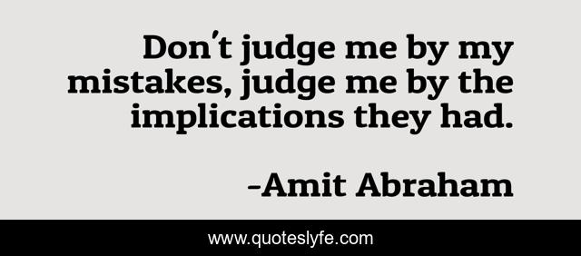 This page presents the quote "Don't judge me by my mistakes, judge me by the implications they had.". Author of this quote is Amit Abraham. This quote is about judgement, mistakes, implications,.