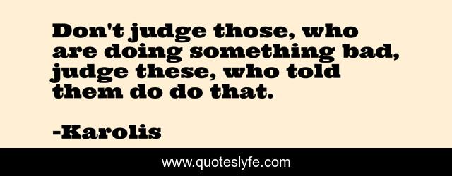 This page presents the quote "Don't judge those, who are doing something bad, judge these, who told them do do that.". Author of this quote is Karolis. This quote is about judge, life, crimes, true, truth,.