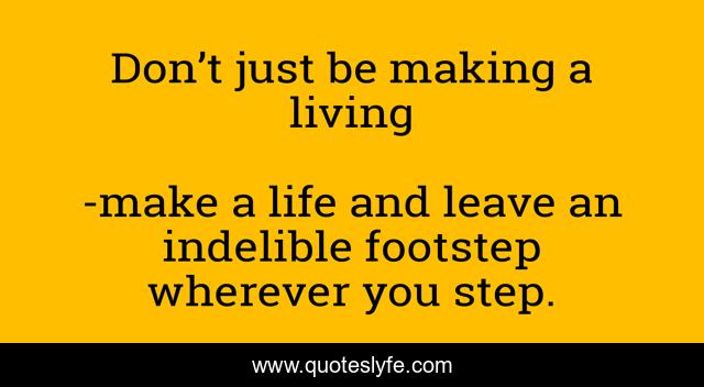 "make a life and leave an indelible footstep wherever you step. Quotes." Quoteslyfe.com, 2025. Sat. 06 Dec. 2025. <https://www.quoteslyfe.com/quote/Don-t-just-be-making-a-living-60125>.
