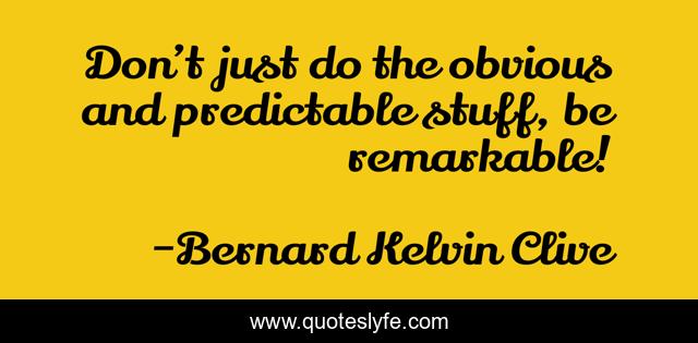 This page presents the quote "Don’t just do the obvious and predictable stuff, be remarkable!". Author of this quote is Bernard Kelvin Clive. This quote is about branding, difference, creativity, remarkable, personal-branding,.