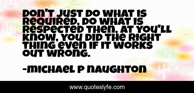 This page presents the quote "Don't just do what is required, do what is respected then, at you'll know, you did the right thing even if it works out wrong.". Author of this quote is michael p naughton. This quote is about motivation, positive, motivational, confidence, optimistic, respect, ethics,.