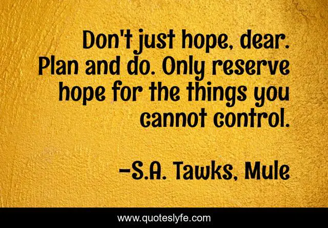 "S.A. Tawks, Mule Quotes." Quoteslyfe.com, 2025. Tue. 09 Dec. 2025. <https://www.quoteslyfe.com/quote/Don-t-just-hope-dear-Plan-and-137214>.