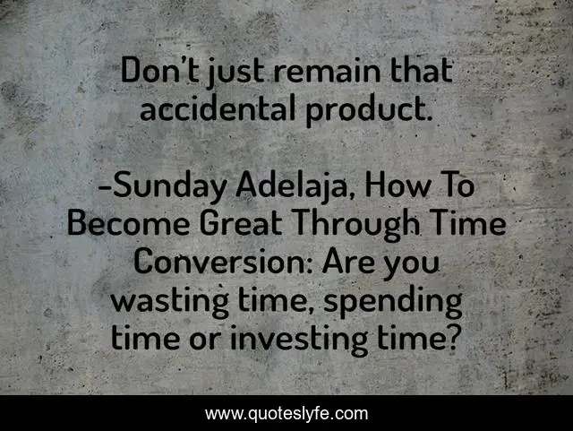 "Sunday Adelaja, How To Become Great Through Time Conversion: Are you wasting time, spending time or investing time? Quotes." Quoteslyfe.com, 2025. Mon. 08 Dec. 2025. <https://www.quoteslyfe.com/quote/Don-t-just-remain-that-accidental-product-39033>.