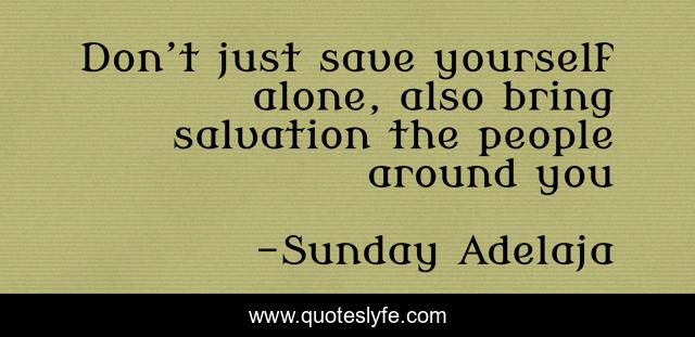 This page presents the quote "Don’t just save yourself alone, also bring salvation the people around you". Author of this quote is Sunday Adelaja. This quote is about life, blessing, spreading-the-word, finance, money, employment, work, salvation-of-others, selflessness,.