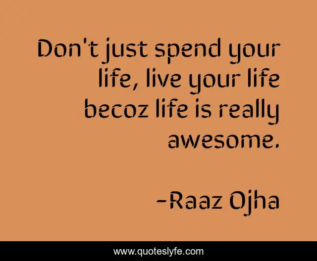 This page presents the quote "Don't just spend your life, live your life becoz life is really awesome.". Author of this quote is Raaz Ojha. This quote is about happiness-life, life, happiness, success,.