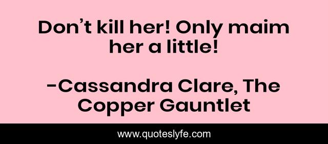 "Cassandra Clare, The Copper Gauntlet Quotes." Quoteslyfe.com, 2025. Tue. 09 Dec. 2025. <https://www.quoteslyfe.com/quote/Don-t-kill-her-Only-maim-her-55696>.