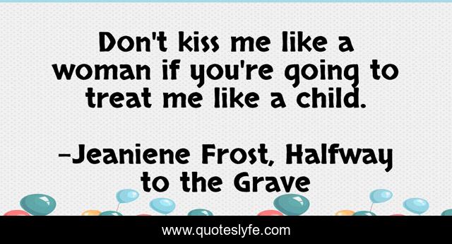 This page presents the quote "Don't kiss me like a woman if you're going to treat me like a child.". Author of this quote is Jeaniene Frost, Halfway to the Grave. This quote is about romance, kissing,.