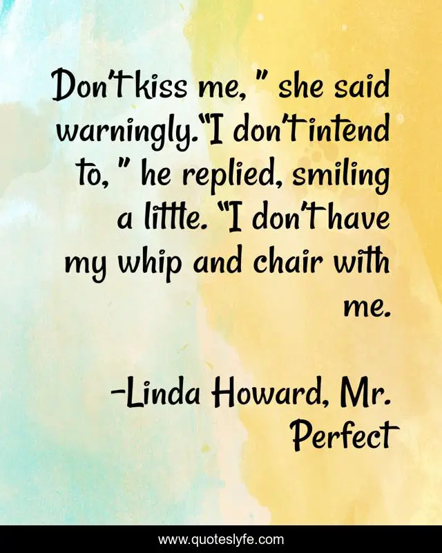 "Linda Howard, Mr. Perfect Quotes." Quoteslyfe.com, 2025. Sun. 07 Dec. 2025. <https://www.quoteslyfe.com/quote/Don-t-kiss-me-she-said-warningly-55500>.