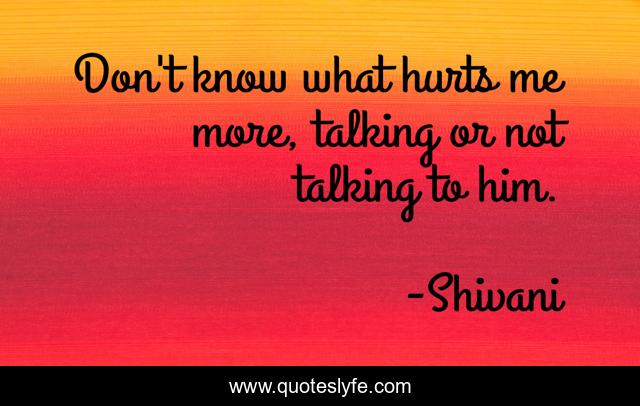 This page presents the quote "Don't know what hurts me more, talking or not talking to him.". Author of this quote is Shivani. .