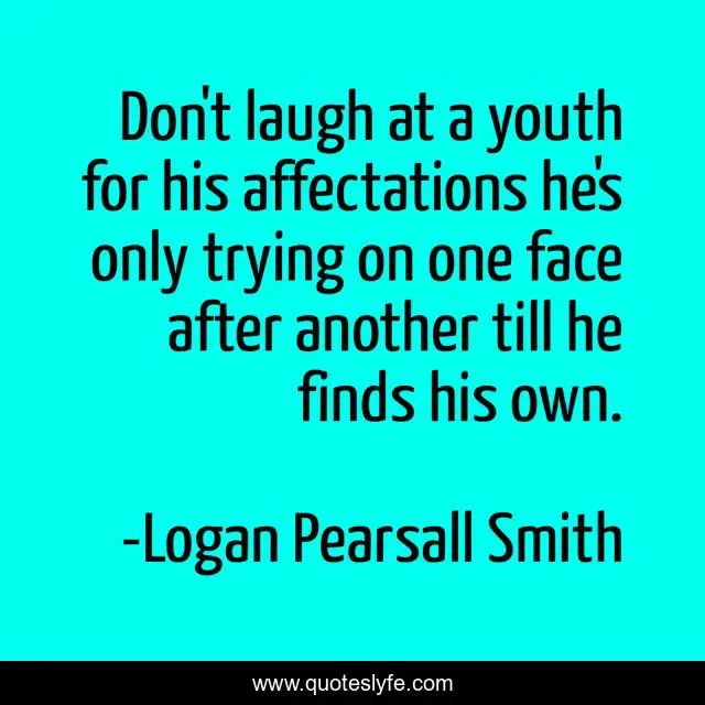 This page presents the quote "Don't laugh at a youth for his affectations he's only trying on one face after another till he finds his own.". Author of this quote is Logan Pearsall Smith. .