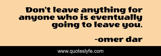 This page presents the quote "Don't leave anything for anyone who is eventually going to leave you.". Author of this quote is omer dar. This quote is about breakup, trust, love, affection,.