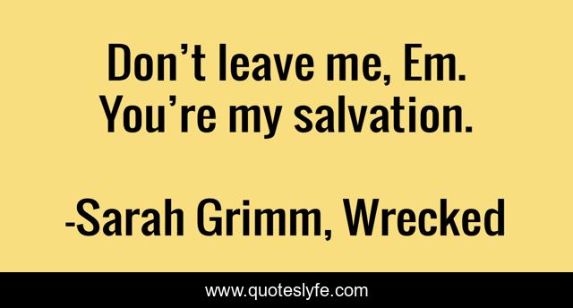 This page presents the quote "Don’t leave me, Em. You’re my salvation.". Author of this quote is Sarah Grimm, Wrecked. This quote is about secrets, admission, love, affection,.