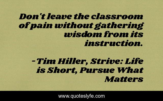 "Tim Hiller, Strive: Life is Short, Pursue What Matters Quotes." Quoteslyfe.com, 2025. Sat. 06 Dec. 2025. <https://www.quoteslyfe.com/quote/Don-t-leave-the-classroom-of-pain-76449>.