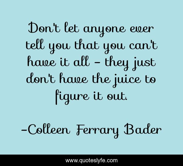 This page presents the quote "Don't let anyone ever tell you that you can't have it all - they just don't have the juice to figure it out.". Author of this quote is Colleen Ferrary Bader. This quote is about successful-living, success,.