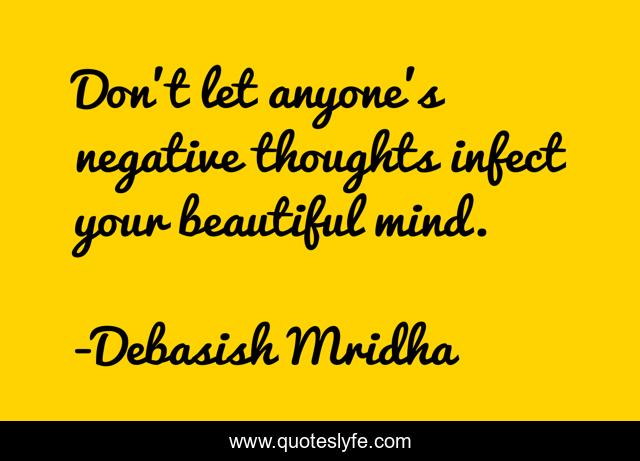 This page presents the quote "Don't let anyone's negative thoughts infect your beautiful mind.". Author of this quote is Debasish Mridha. This quote is about beautiful-mind, philosophy, debasish-mridha, quotes, negative-thoughts, inspirational, enthusiasm, debasish-mridha-m-d,.