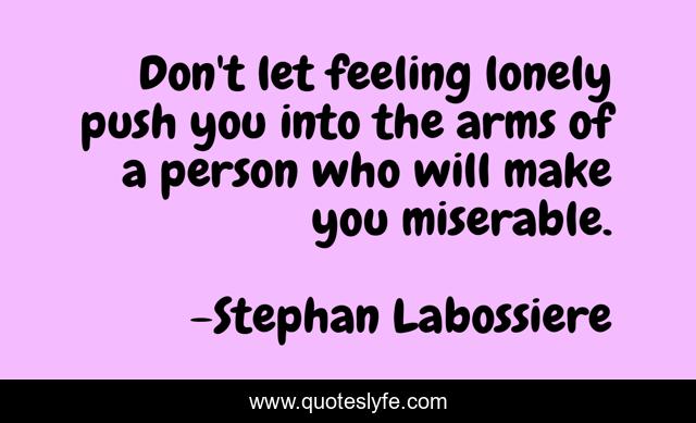 This page presents the quote "Don't let feeling lonely push you into the arms of a person who will make you miserable.". Author of this quote is Stephan Labossiere. This quote is about relationships, lonely, companionship, advice, miserable, dating,.