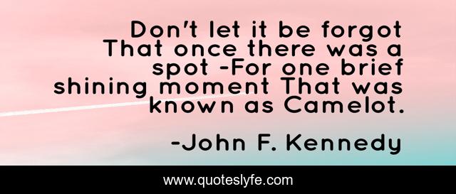 This page presents the quote "Don't let it be forgot That once there was a spot -For one brief shining moment That was known as Camelot.". Author of this quote is John F. Kennedy. .