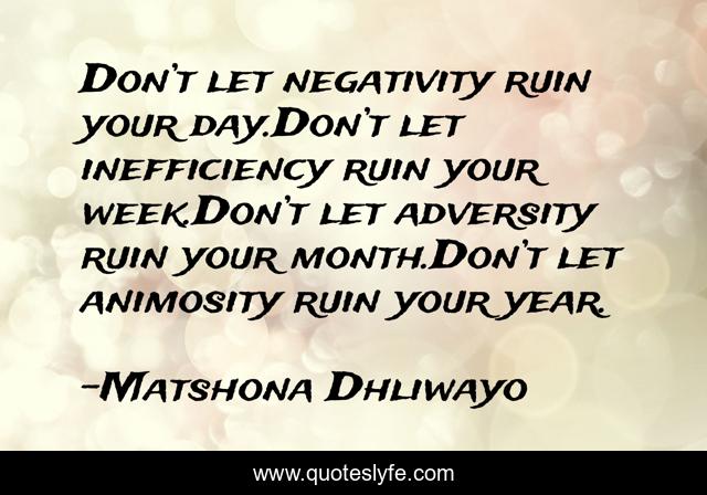 "Matshona Dhliwayo Quotes." Quoteslyfe.com, 2025. Sat. 06 Dec. 2025. <https://www.quoteslyfe.com/quote/Don-t-let-negativity-ruin-your-day-208109>.