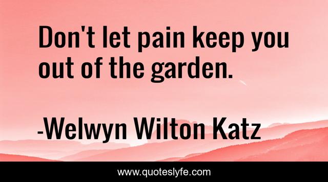 This page presents the quote "Don't let pain keep you out of the garden.". Author of this quote is Welwyn Wilton Katz. This quote is about joy, pain, rise-above,.