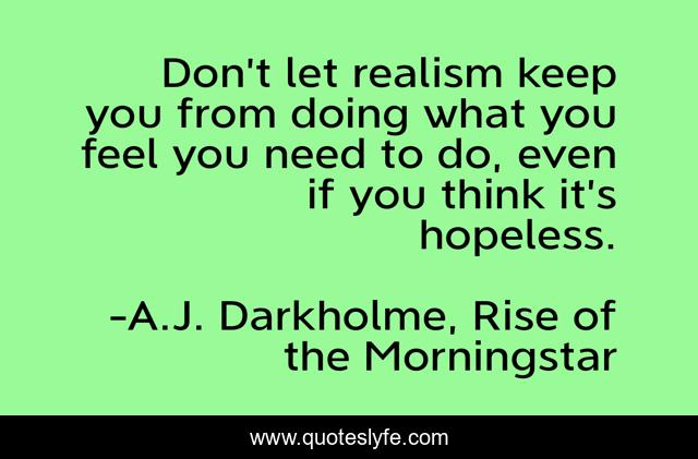 "A.J. Darkholme, Rise of the Morningstar Quotes." Quoteslyfe.com, 2025. Fri. 05 Dec. 2025. <https://www.quoteslyfe.com/quote/Don-t-let-realism-keep-you-from-188214>.