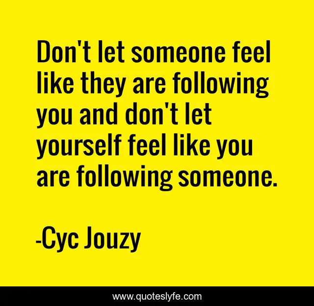 This page presents the quote "Don't let someone feel like they are following you and don't let yourself feel like you are following someone.". Author of this quote is Cyc Jouzy. This quote is about focus, independence,.