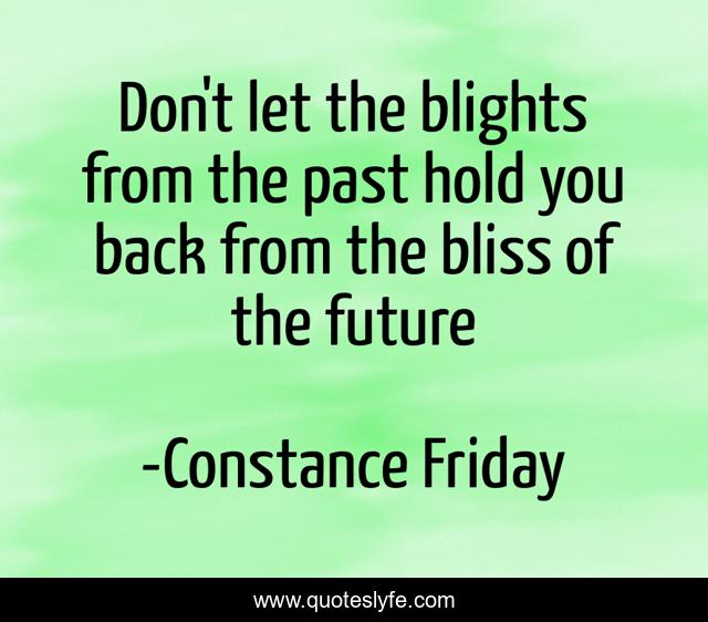 This page presents the quote "Don't let the blights from the past hold you back from the bliss of the future". Author of this quote is Constance Friday. This quote is about moving-forward, back, optimism, positive-thinking, past, future, bliss, happiness, optimist,.