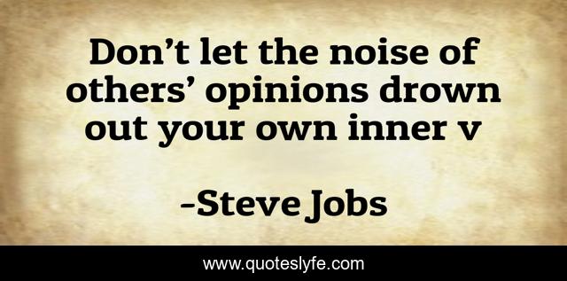 This page presents the quote "Don’t let the noise of others’ opinions drown out your own inner v". Author of this quote is Steve Jobs. This quote is about steve-jobs, inner-voice, apple-computer-inc, life, independence, identity,.