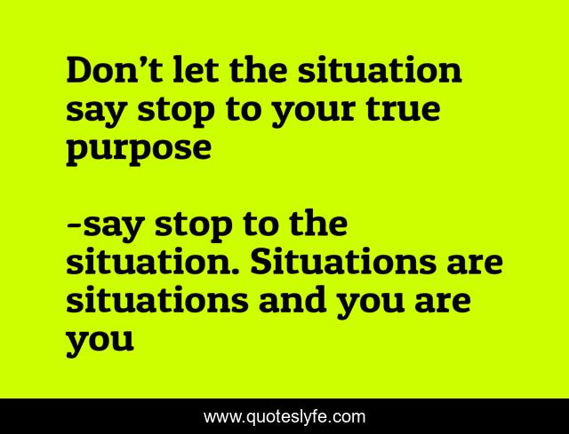 This page presents the quote "Don’t let the situation say stop to your true purpose". Author of this quote is say stop to the situation. Situations are situations and you are you. .