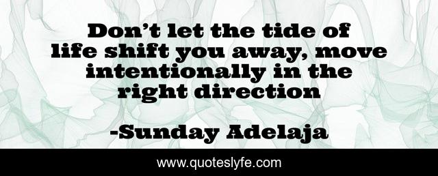 This page presents the quote "Don’t let the tide of life shift you away, move intentionally in the right direction". Author of this quote is Sunday Adelaja. This quote is about kingdom, life, love, jobless, service, people, money, god, work,.