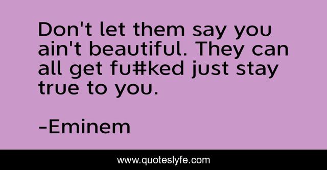 This page presents the quote "Don't let them say you ain't beautiful. They can all get fu#ked just stay true to you.". Author of this quote is Eminem. This quote is about beautiful, eminem,.