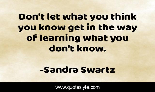 This page presents the quote "Don't let what you think you know get in the way of learning what you don't know.". Author of this quote is Sandra Swartz. .
