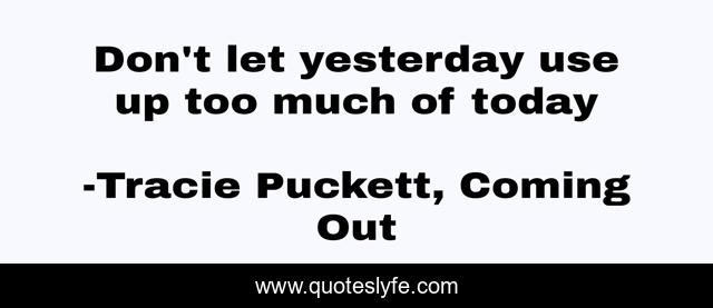 This page presents the quote "Don't let yesterday use up too much of today". Author of this quote is Tracie Puckett, Coming Out. This quote is about grove, puckett, tracie, book, 4, coming, webster, nate, out,.